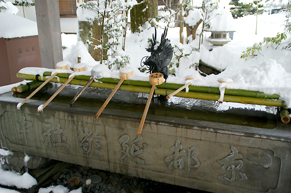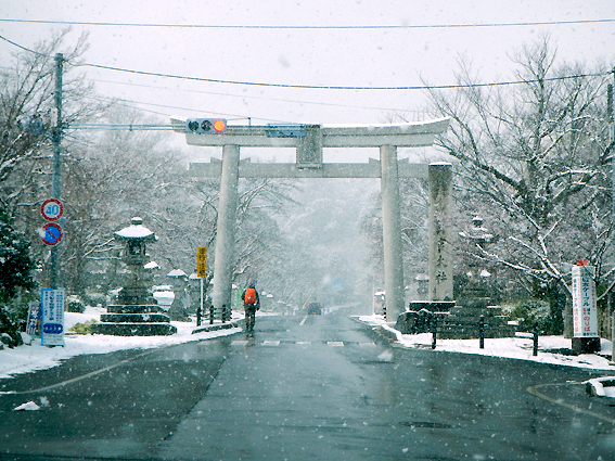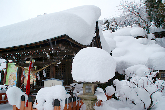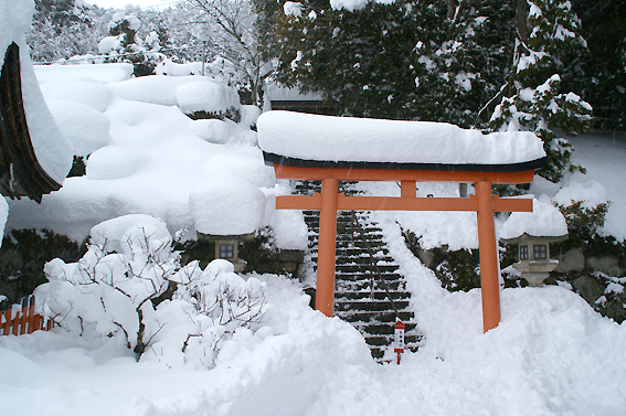 巫女さんに話を聞くと雪かきが追い付かづ参っているそうです。