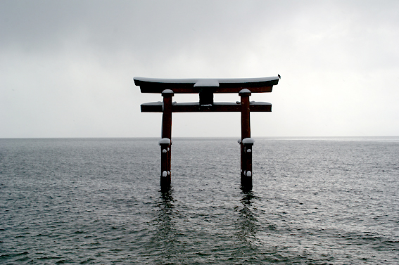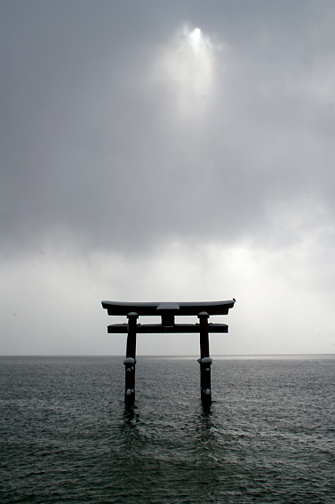 この鳥居は、湖に突然と現れたという言い伝えが残る鳥居だそうです。