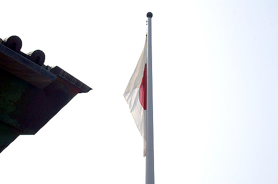 神楽殿の目の前にある日本の国旗。