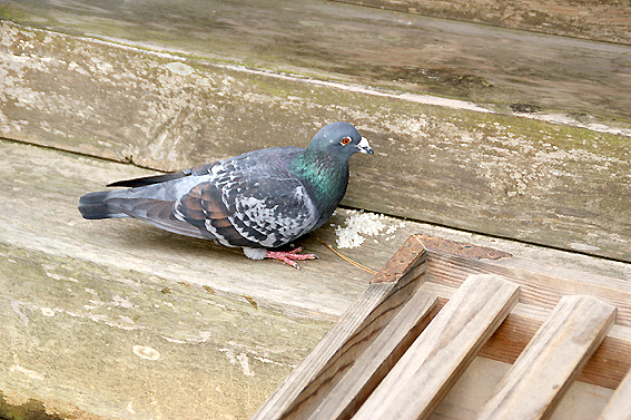 ハトが一匹米を食っとる!誰だろう米を置いたのは。