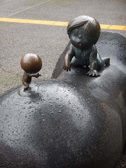 お〜ここには鬼太郎が生まれたばっかりの頃のブロンズ像が。