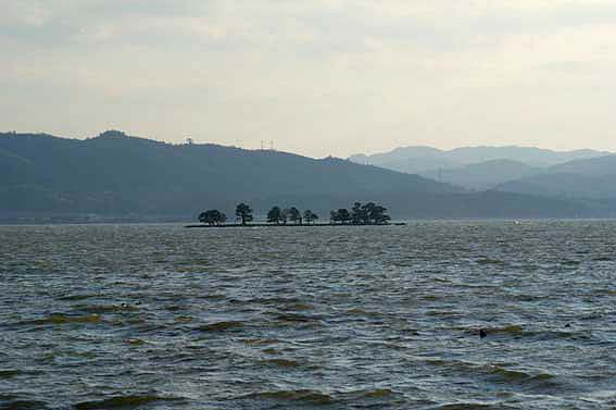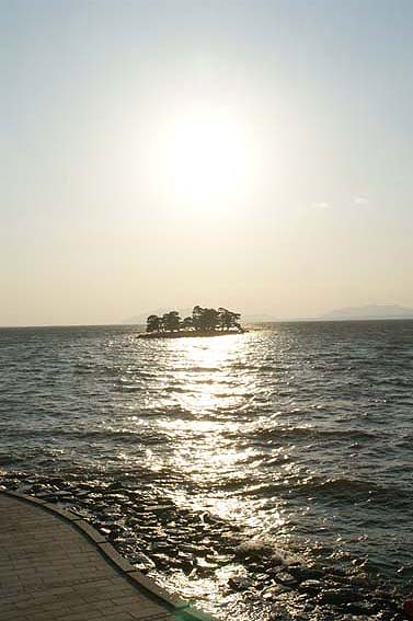 宍道湖の夕日の写真には必ずと言っていいほど嫁ヶ島越しの夕日が写っています。