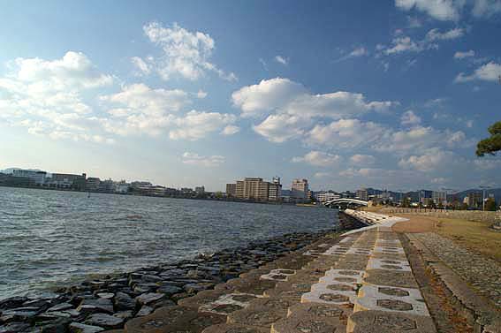 数少ない宍道湖周辺の無料駐車場に車を停め、ある場所を目指し遊歩道を歩きます。