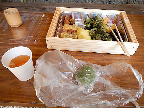 お茶とお新香が無料で出してくれました。あんこが入ったお餅にちょうどいいです。