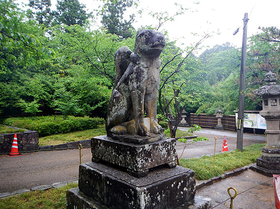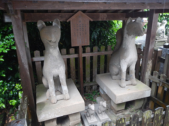 出ました。石段登ってすぐに現れる狐の石造。