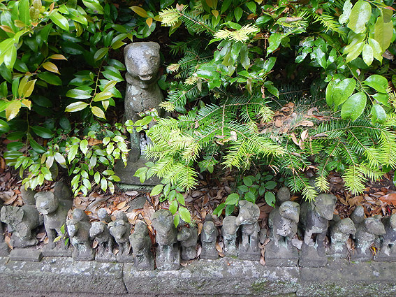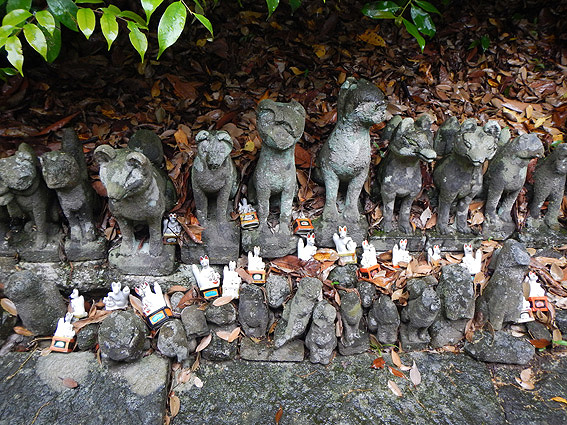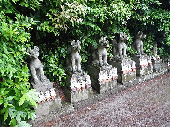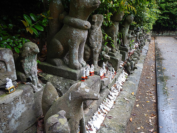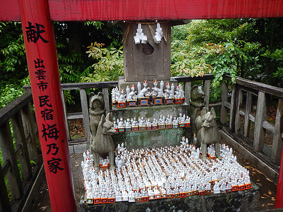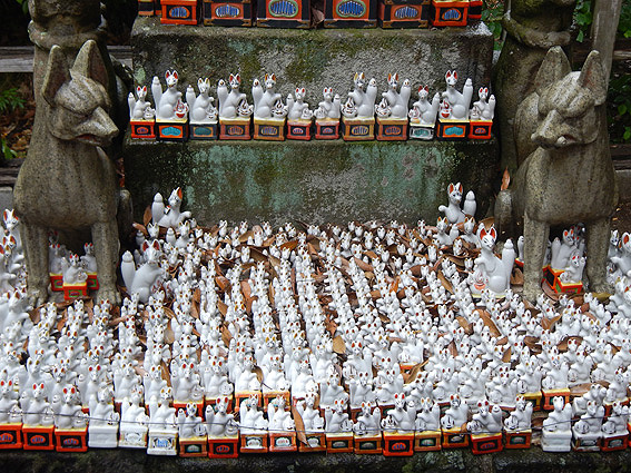 凄い数の小さな狐の置物があります。