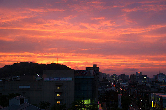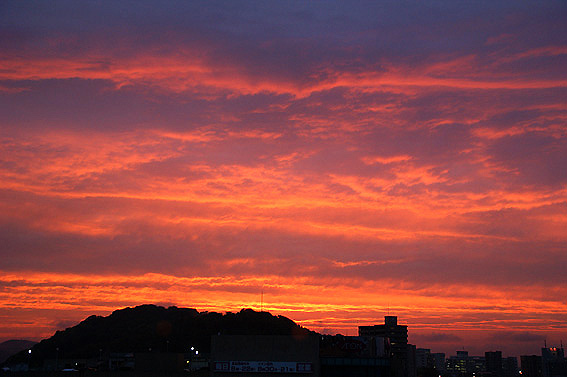 部屋に入ると一瞬ですがこんな赤々とした夕日が見れました。