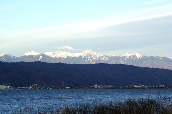 向こう側に見える山々は蓼科山や八ヶ岳あたりかな。