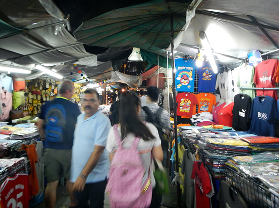 これが噂のバッタ物の露店。狭い道に人、人、人・・・・うざい。 スリには気をつけましょう。