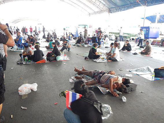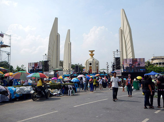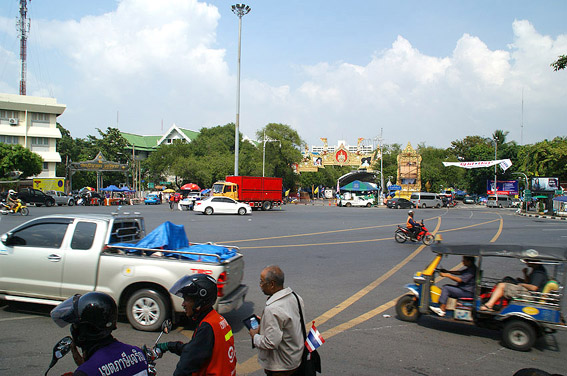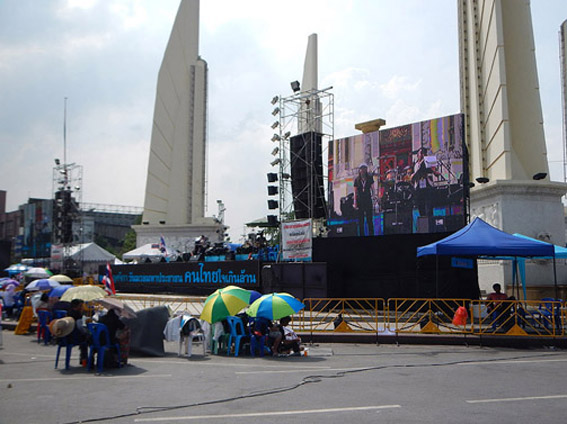 民主記念塔で炎天下の中スピーチや歌手が歌ってます。それを真面目に聴くタイの人々。辛そ〜。