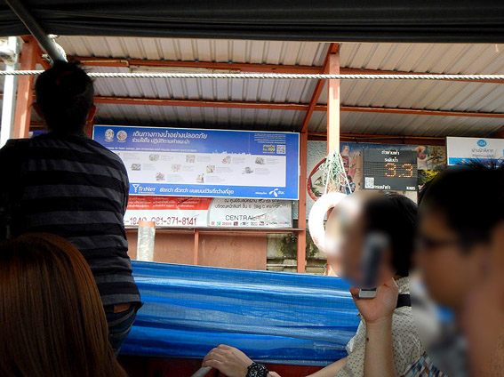 船上します。ファンファー(Phan Fa Lilat)まで片道12B(¥36円)船の移動が一番安いです。