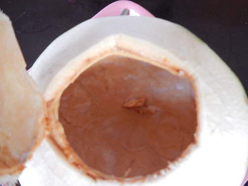 すげー ココナッツの中身を綺麗に食べてました。