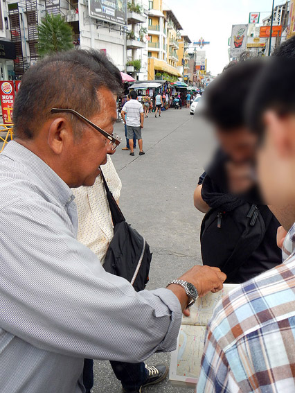 そして、道に迷うと適当なおっさんを捕まえ道を訪ねますがやはりタイ語。全然分かりません。やれやれ。