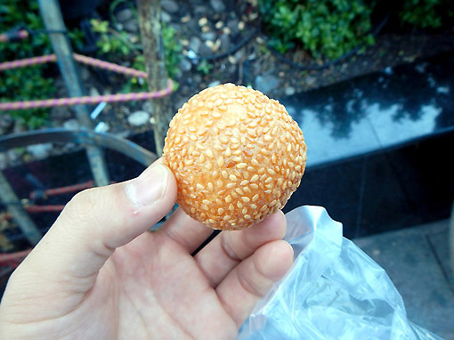 途中屋台で売られていた揚げ饅頭らしき物を購入。これまた美味い。