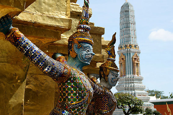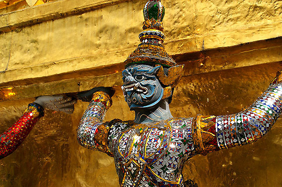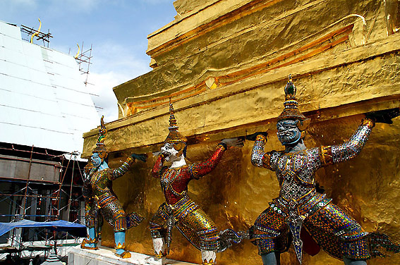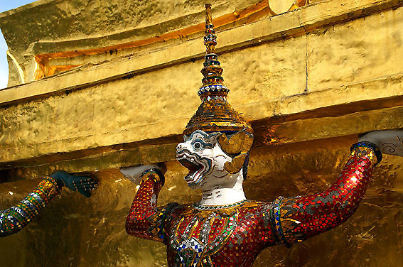 ラマ1世の仏教経典( トリプタカ(金の経典)とも言う )を守るヤックとナーク。