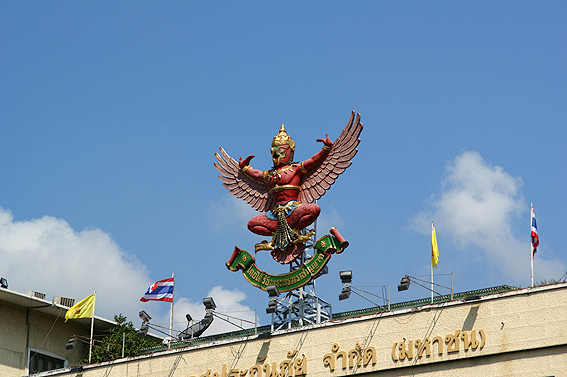 道路挟んで反対側にある建物はなんですかね?ガルーダが飾ってあります。
