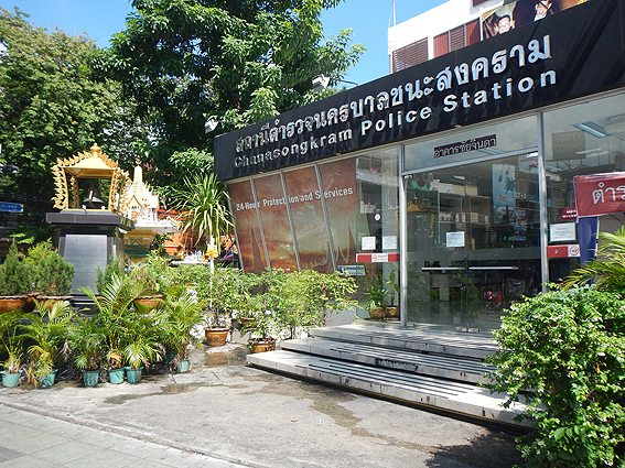 ツーリストポリスを右に。Chakrabongse Rdをひたすらまっすぐ歩きます。