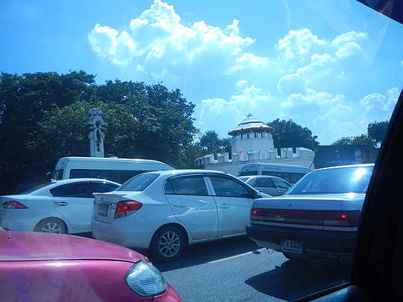 道路が渋滞してますね。けど車内はエアコン効いていて涼しい〜。楽だわ。