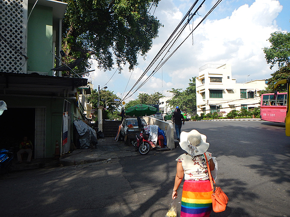 Google mapを見るとワット・サケートから船着場まで近いので歩いて向かいます。門を出て左へ進みます。