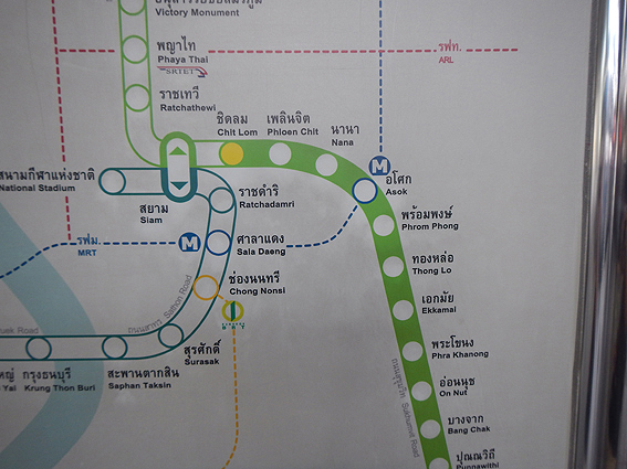 Chit Lom(チットロム)駅に到着。このままPhrom Phong(プロンポン)へ戻りましょう。