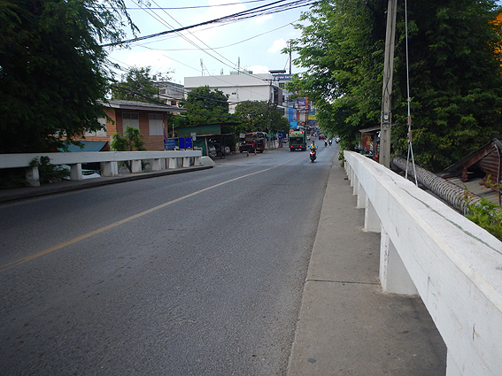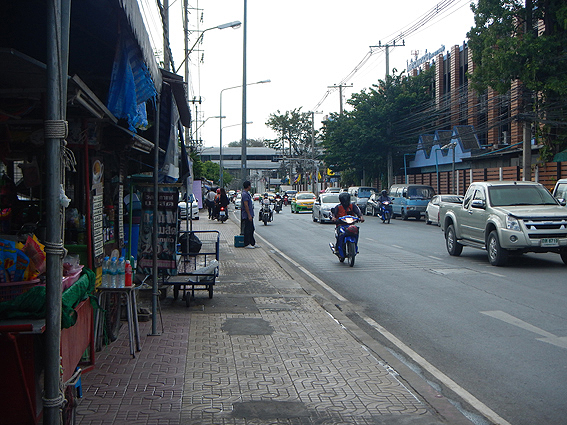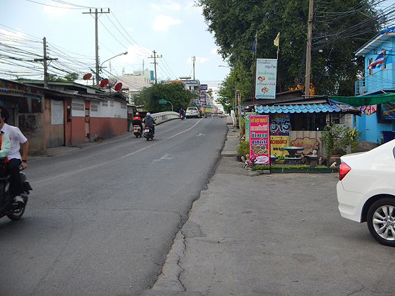 歩道橋を降りて、ひたすらこの道をまっすぐ歩きますよ。Google mapで再確認。間違いなし。