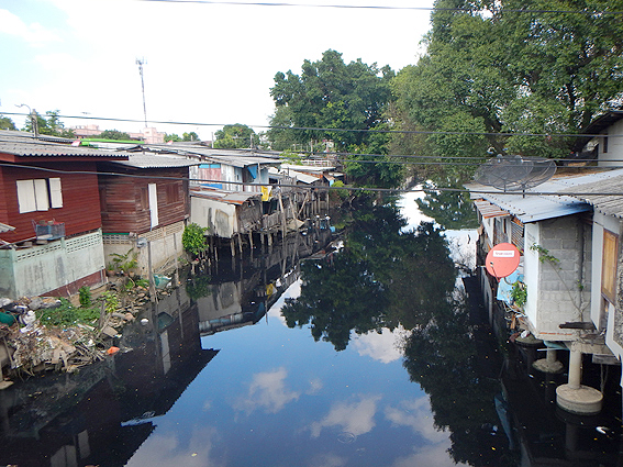 しばらく歩いて川が見えてきました。臭い川だな〜。