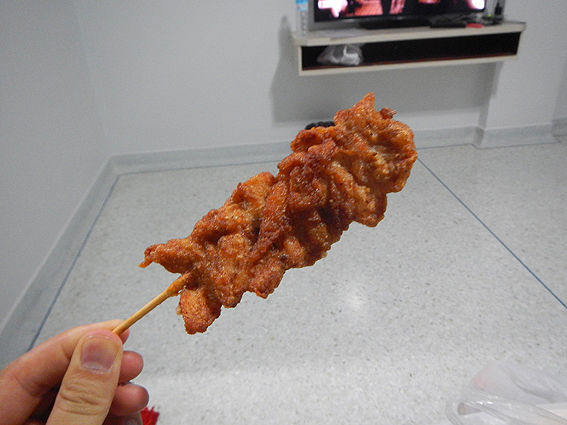 コンビニの前で売られていた焼き鳥・・・から揚げを串に刺しただけの物ですね。味は美味しい。