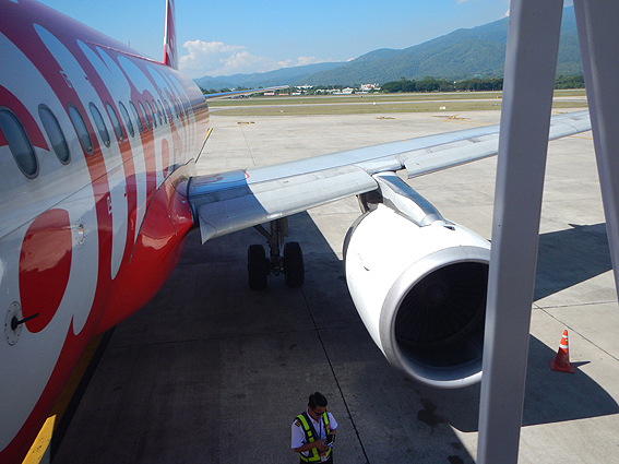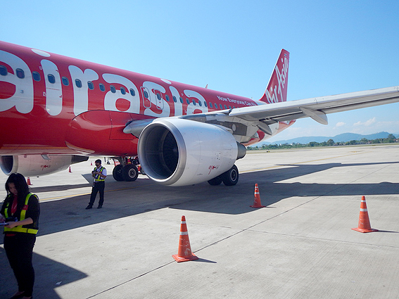 あれが今回乗る飛行機、タイ エアアジア3435便だな。搭乗時間になったので機内へ向かいましょう。