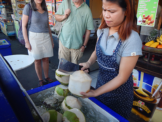 歩き回り喉がカラカラです。ここは凍り水に入っているココナッツのジュースを頂きましょう。
