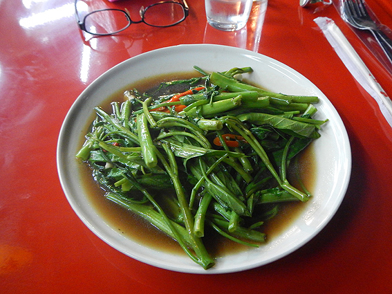 はい。来ました。大好物です。空芯菜のオイスターソース炒め。めちゃウマ!