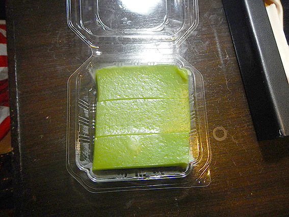 食べてみるとココナッツ味のおもちみたいな、硬いゼリーみたいな、何とも言えない食べ物でした。そして凄く甘い。