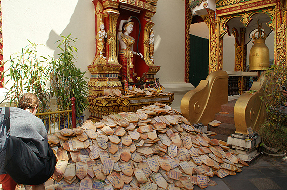 なんでしょうか。木の板に沢山の文字が書かれてましたね。願い事?日本の絵馬みたいな物でしょうか?
