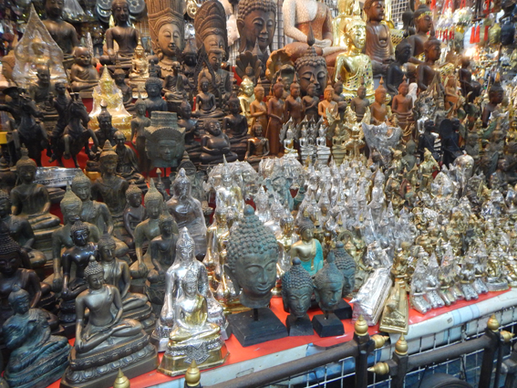 大小さまざまな仏像や、鐘、寺院等で飾られている物がすさまじい量で売られてました。