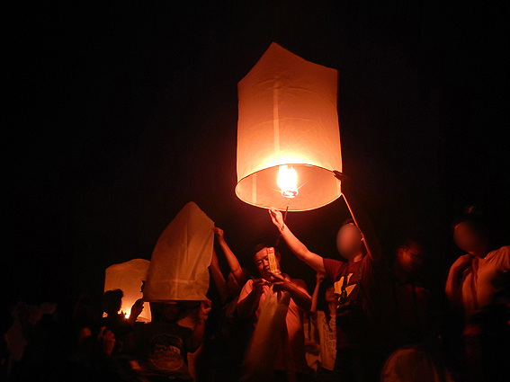 そして、Aさんが買ったコムローイも一緒に打上げました。ちゃんと飛んでくれてよかった。