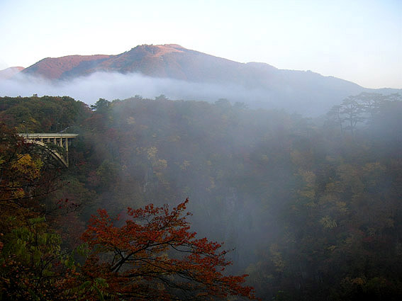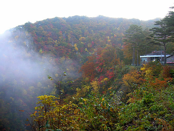 AM7時頃です。まだ鳴子峡は雲に覆われていました。
