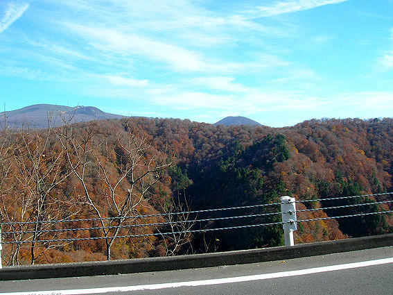 向こうに見えるのが栗駒山?進行方向からするとあそこかな〜って感じでした。