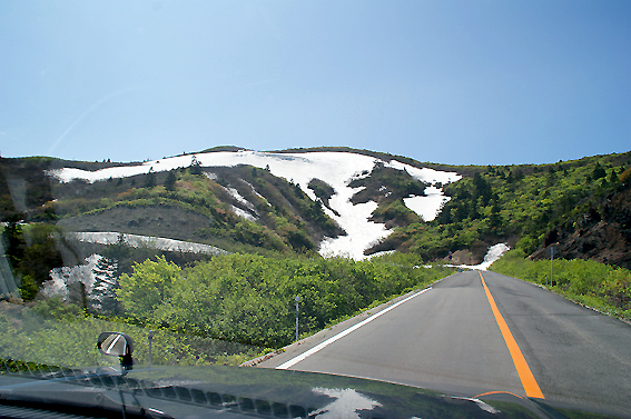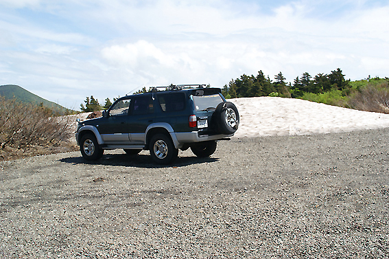 よく見ると車のすぐ側に残雪が。