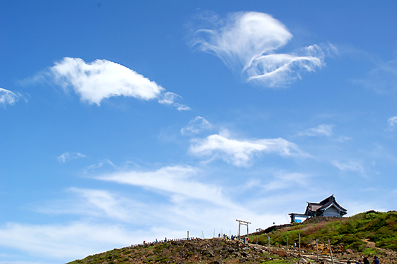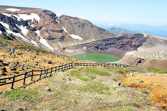 大勢の観光客が御釜をバックに記念撮影してましたね。