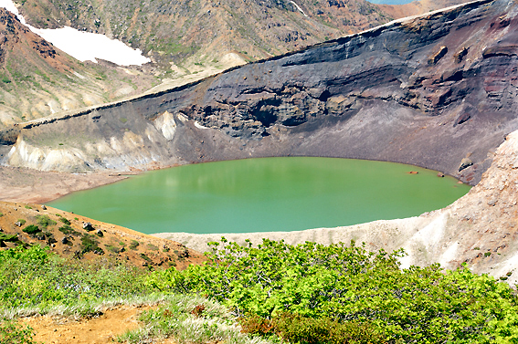ん〜本来は火口湖がエメラルドグリーンに見えるみたいですが・・・色薄いかな。