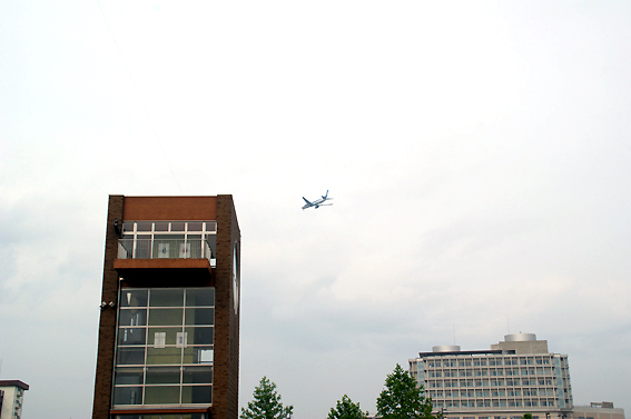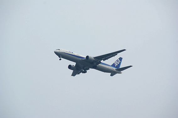 ゴォーの音に振り返ると飛行機が。意外と近くまで降りてきてたみたいです。
