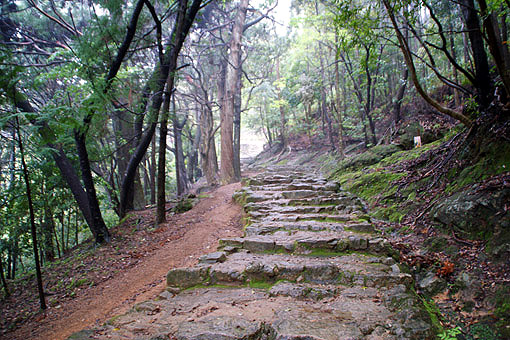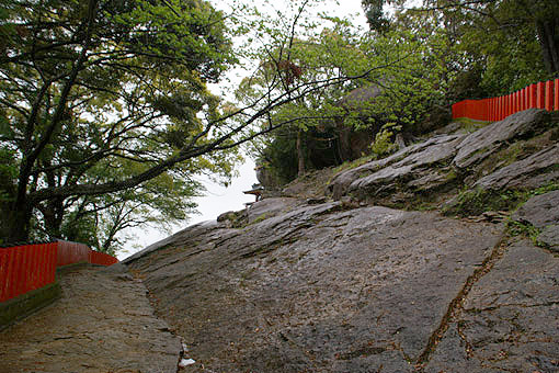 雨にもかかわらず私以外に数組が訪れてました。しかし、この石段かなりの急斜面です。