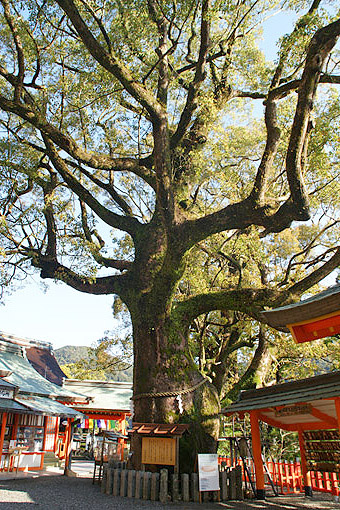 和歌山県天然記念物になっている那智の樟(くす) 高さ27m 幹回り約8.5m 枝南北張り、約25m