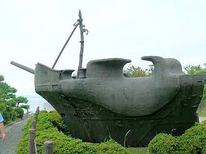 陸奥記念館の駐車場に艦首が飾られていました。