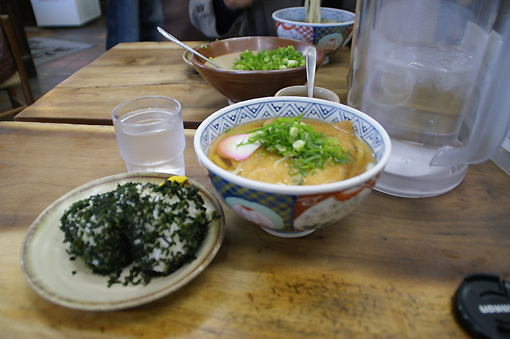 そして、昼食です。ここでもワカメおにぎりときつねうどんです。どんどんってお店だったかな。