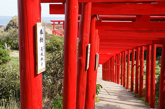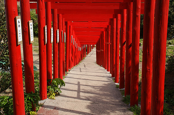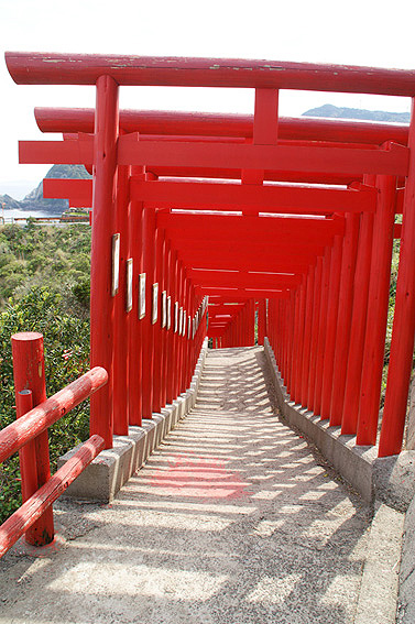 では、海へ向かって下りましょう。京都の稲荷大社にある千本鳥居を思い出しますね。