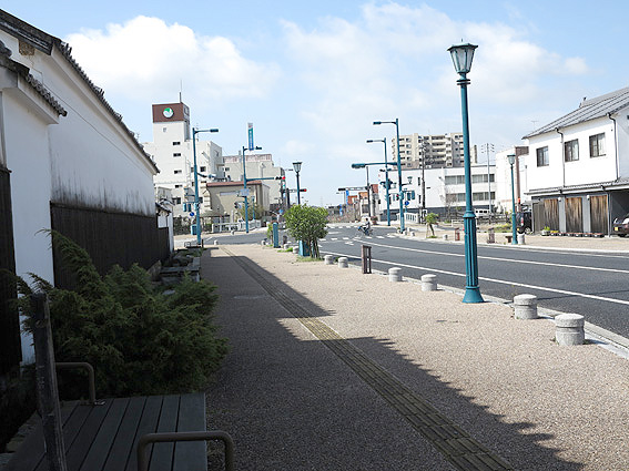 柳井駅に向かいます。昨日は雨であまり周りを見渡してませんでしたが壁が白いですね。
