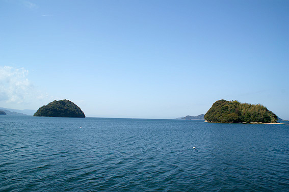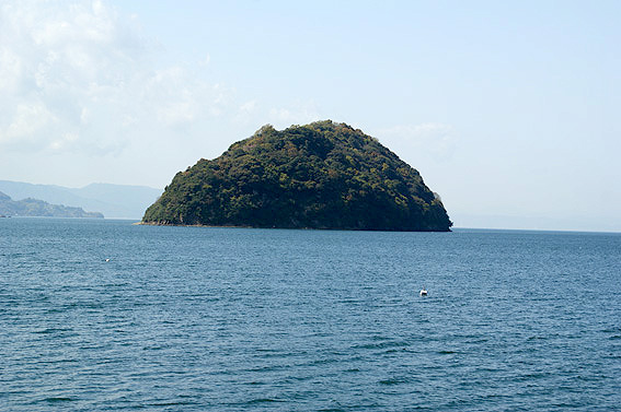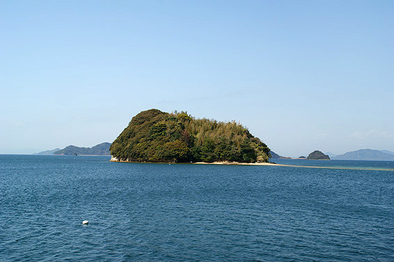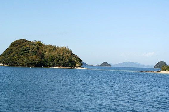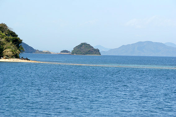 もしや、潮が引くとあの島へ行く道が出てきちゃったりしたりして?