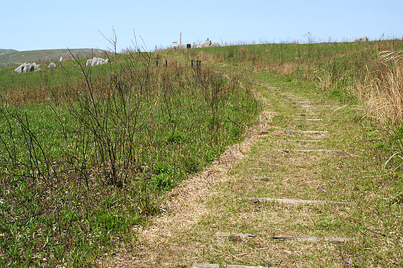 で、遠くから見えていた白い柱に到着です。剣山の看板も。