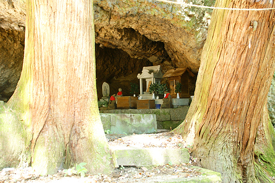 大きな岩の下に洞窟があり、そこに虚空蔵菩薩(こくうぞうぼさつ)が祀られています。