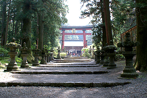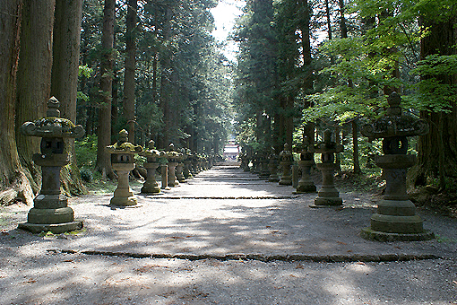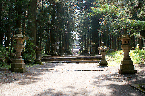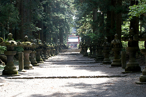 参道の両脇に並ぶ灯篭がいい感じです。